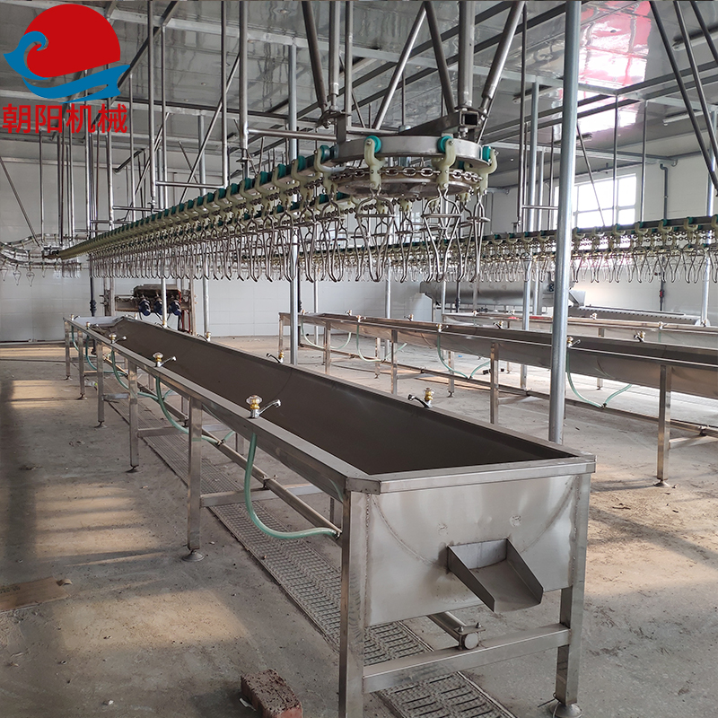雞宰殺之前,需要人工掛雞,然后用90v電麻機(jī)把雞電麻之后人工宰殺,瀝血,瀝血時(shí)間4-5分鐘,瀝血完成之后進(jìn)入浸燙池浸燙2分鐘左右,浸燙溫度在58-61攝氏度,浸燙溫度可以根據(jù)雞的生長(zhǎng)周期來(lái)調(diào)整溫度,浸燙池的尺寸是根據(jù)客戶的宰殺量來(lái)定制。