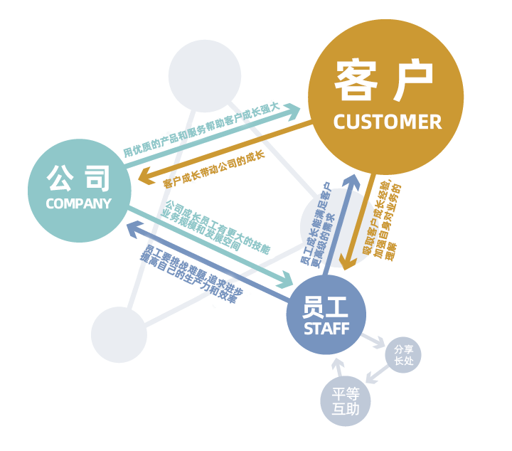 熱愛客戶 熱情 - 熱情服務(wù)每一位客戶 主動(dòng) - 積極主動(dòng)為客戶解決問題 朋友 - 把客戶當(dāng)朋友,尊重客戶,幫助客戶成長(zhǎng) 服務(wù) - 為客戶不斷提升服務(wù)意識(shí) |